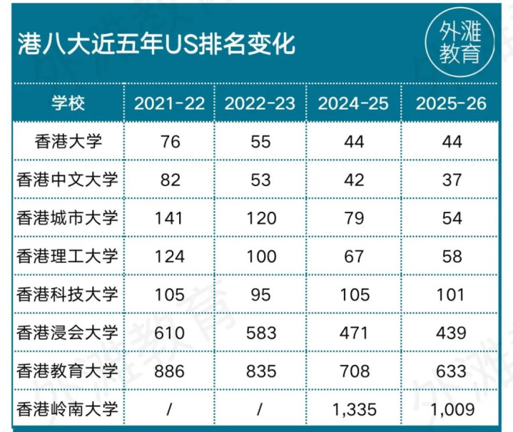 近年来,港八大可以说太想进步了。U.S.排名中,从五年前的两所进百,到现在四所进百。